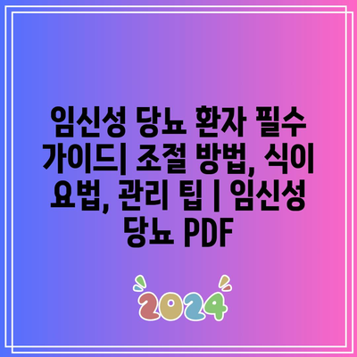 임신성 당뇨 환자 필수 가이드| 조절 방법, 식이 요법, 관리 팁 | 임신성 당뇨 PDF