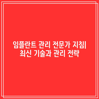 임플란트 관리 전문가 지침| 최신 기술과 관리 전략